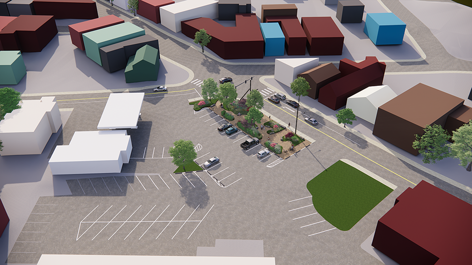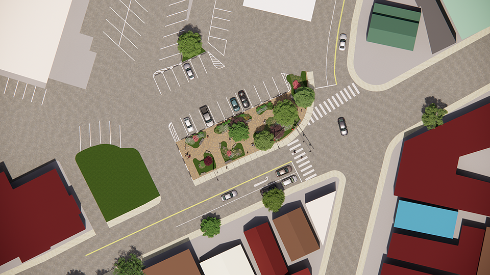 The present site is a meandering municipal parking lot, situated at an important crossroads and, as an unsightly part of the urban fabric, has a negative impact on visitors and residents. This is mitigated only by the efforts of the New Paltz Garden Club, whose planting area is extremely limited. The challenge was to improve this problematic area, while maintaining the number of parking spaces and an unobstructed circulation route.